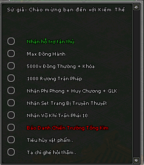 - Bước 7 : -Gặp Npc hỗ Trợ để Chọn Phe Báo Danh Tống Kim( Hoặc dùng vô hạn truyền tống phù vào khu báo danh tống kim)